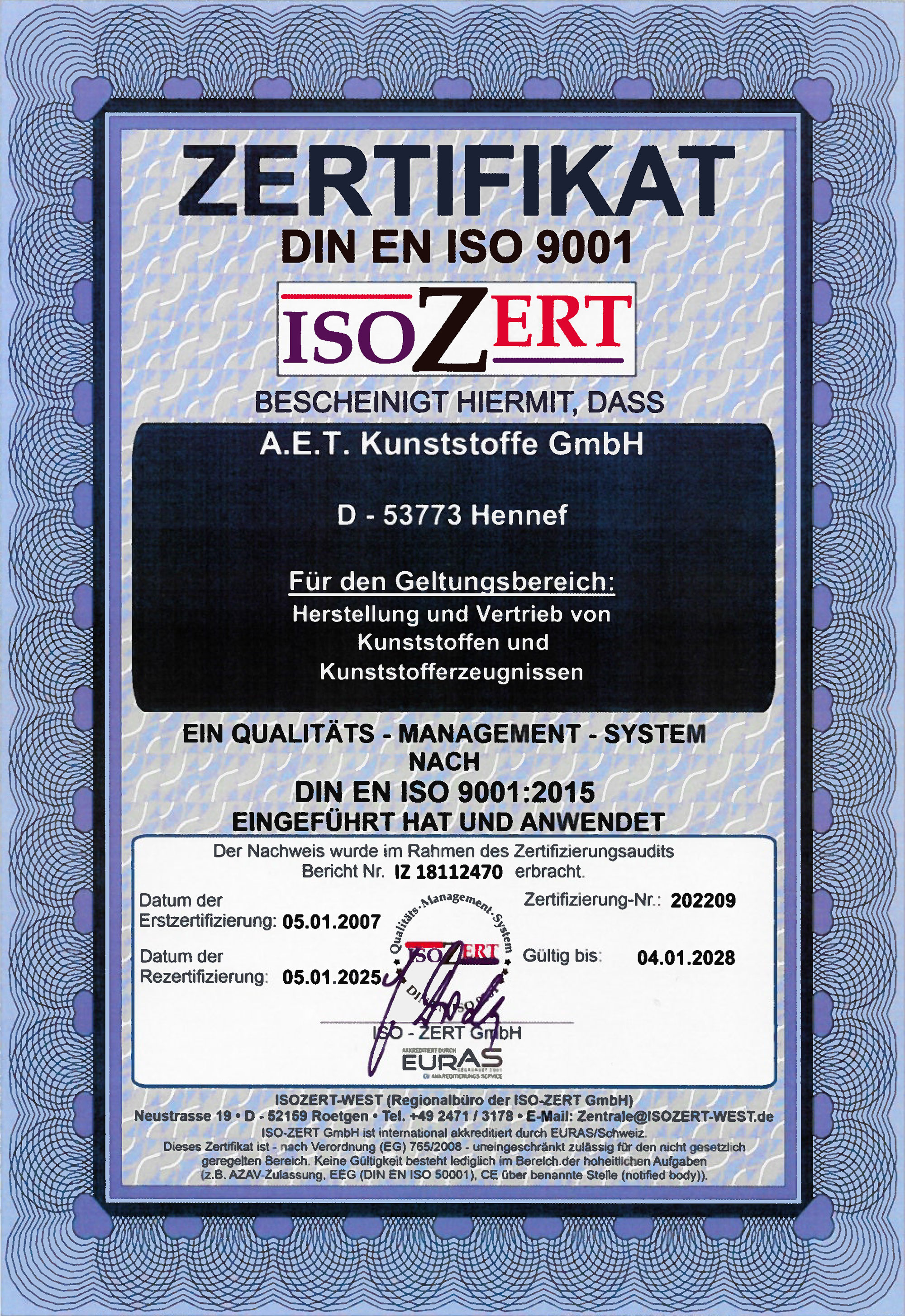 Zertifikate A.E.T. Kunststoffe